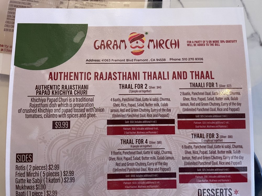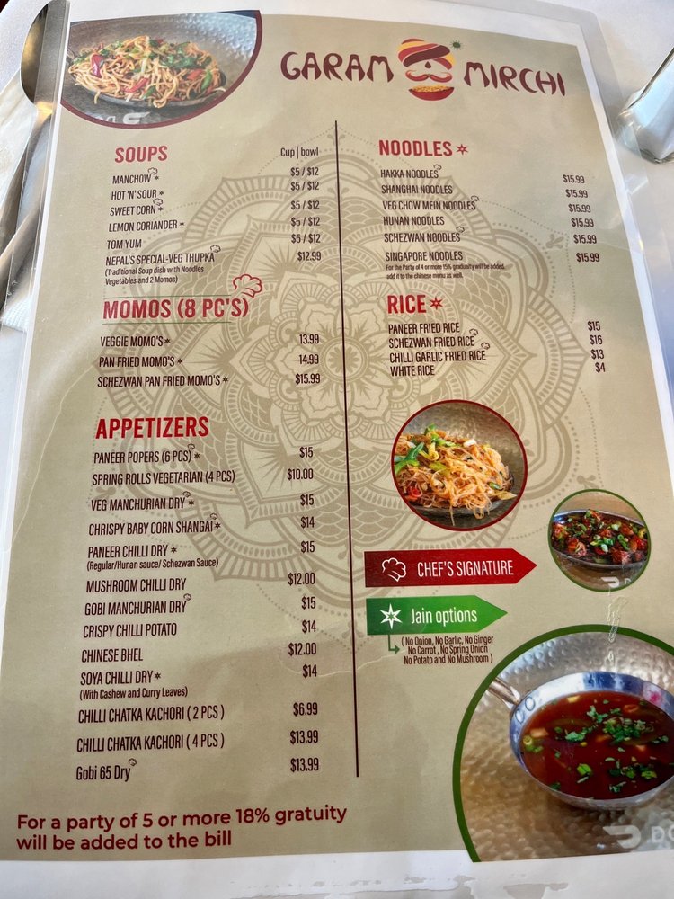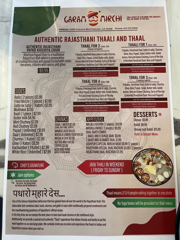 Garam Mirchi Pure Veg Indo-Chinese and Rajasthani Cuisine Menu